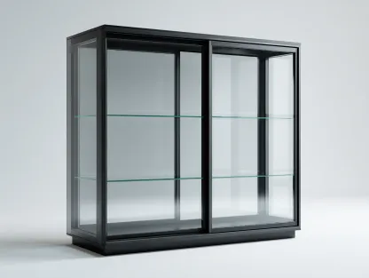 Vitrinas diseñadas para exhibir y organizar objetos decorativos, vajillas o colecciones en el hogar. Su diseño moderno con estructura negra y paneles de vidrio permite una visualización clara del interior, aportando un estilo elegante que se integra fácilmente en salones, comedores o espacios de exposición.