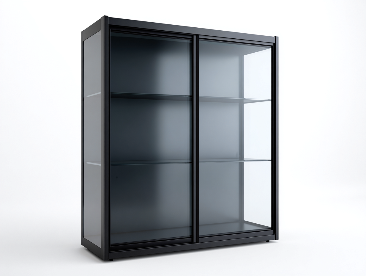 El sistema de puertas correderas facilita el acceso al interior sin ocupar espacio adicional. Los estantes interiores ofrecen amplias superficies para organizar diferentes objetos manteniendo el orden y la visibilidad.